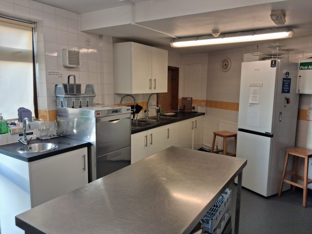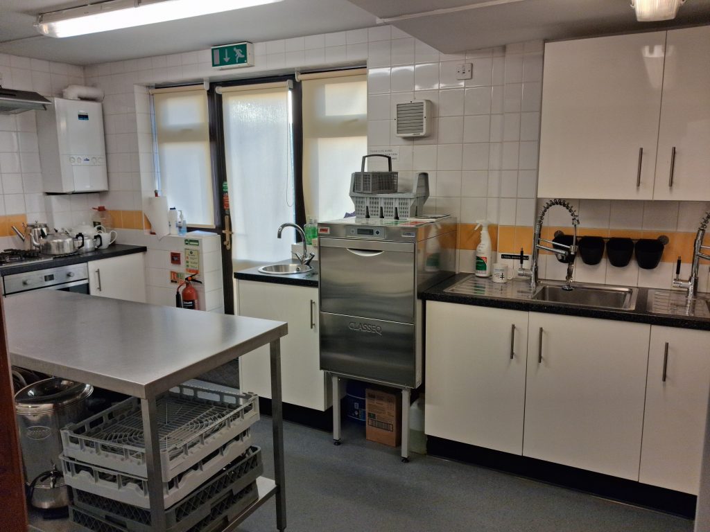 A professionally maintained, fully furnished kitchen with a Level 5 hygiene rating, ideal for catering events up to 100 guests.