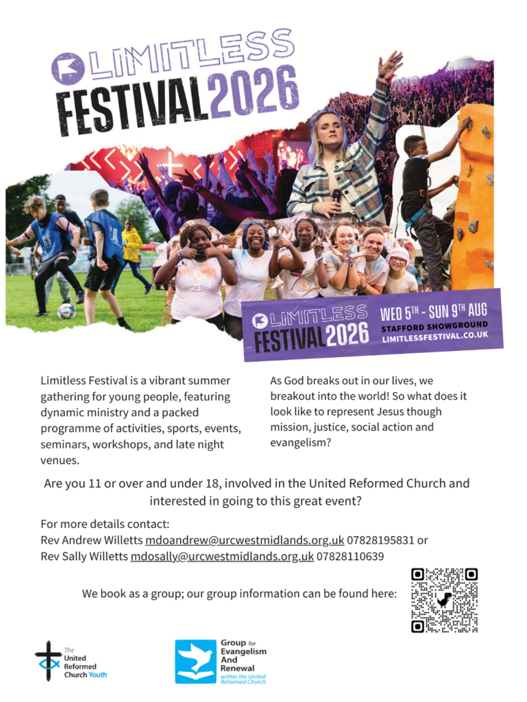 The United Reformed Church would like to share this fantastic opportunity for young people this summer – Limitless festival 2026!
