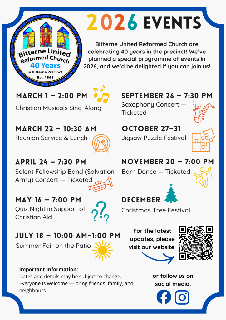 Dear Friends, Nikki has been working hard to share the story of all we do here at Bitterne URC—helping our community discover who we are, what we offer, and that we’re here to support them.